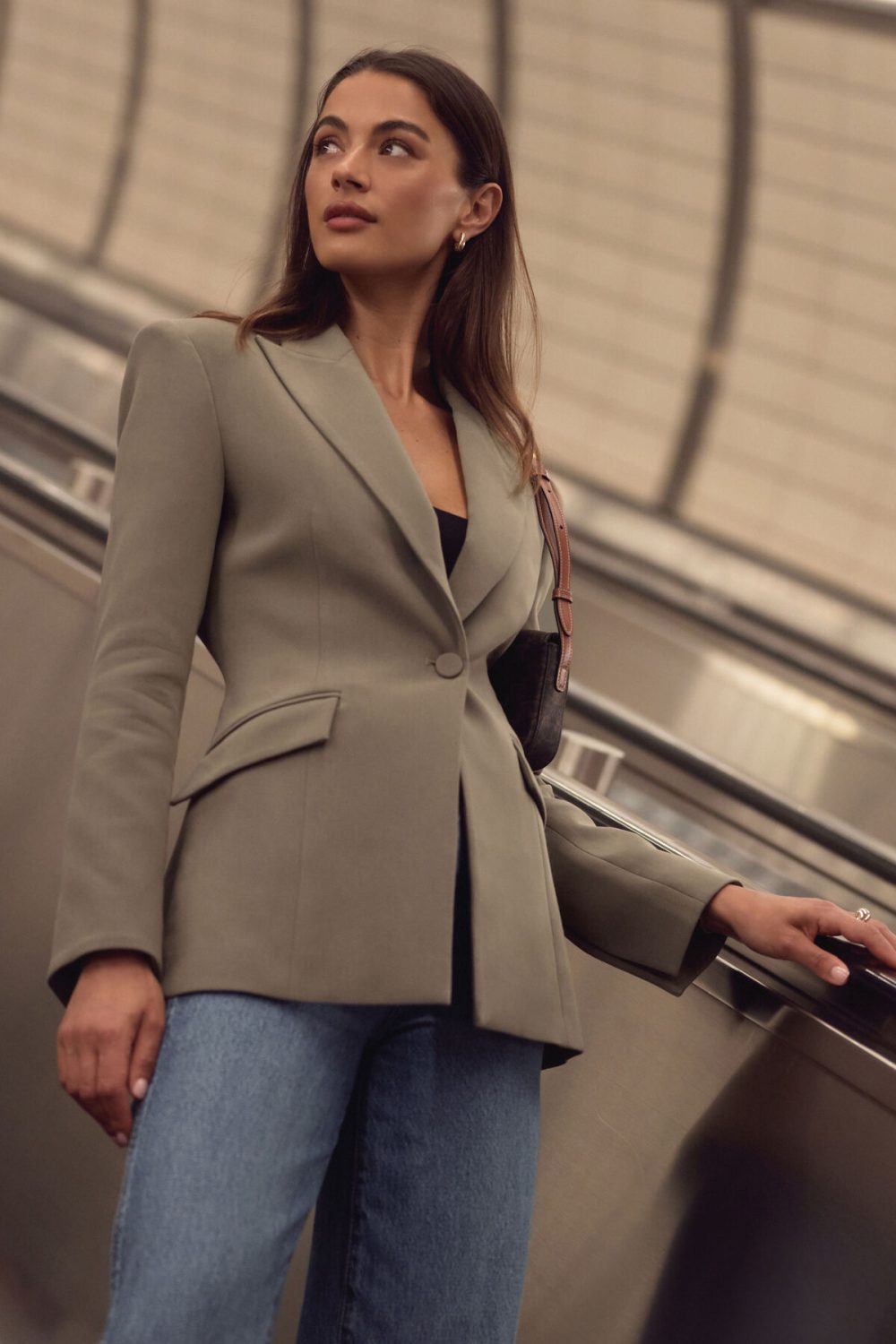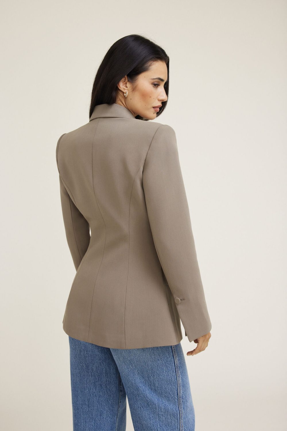 This blazer is made from double weave fabric that has a thick handfeel with just a bit of stretch to move with you. It’s fitted throughout the bust and flares at the waist for a cinched effect. Style it with pants for your days at the office or with a skirt for something a little more refined.