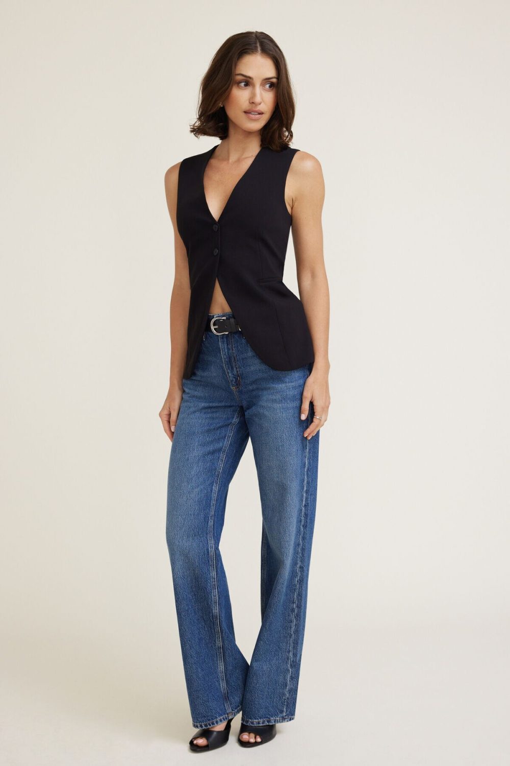 This vest is made from double weave fabric that has a thick handfeel with just a bit of stretch to move with you. It’s fitted throughout the bust and flares at the waist for a cinched effect. Style it with pants for your days at the office or with a skirt for something a little more refined.