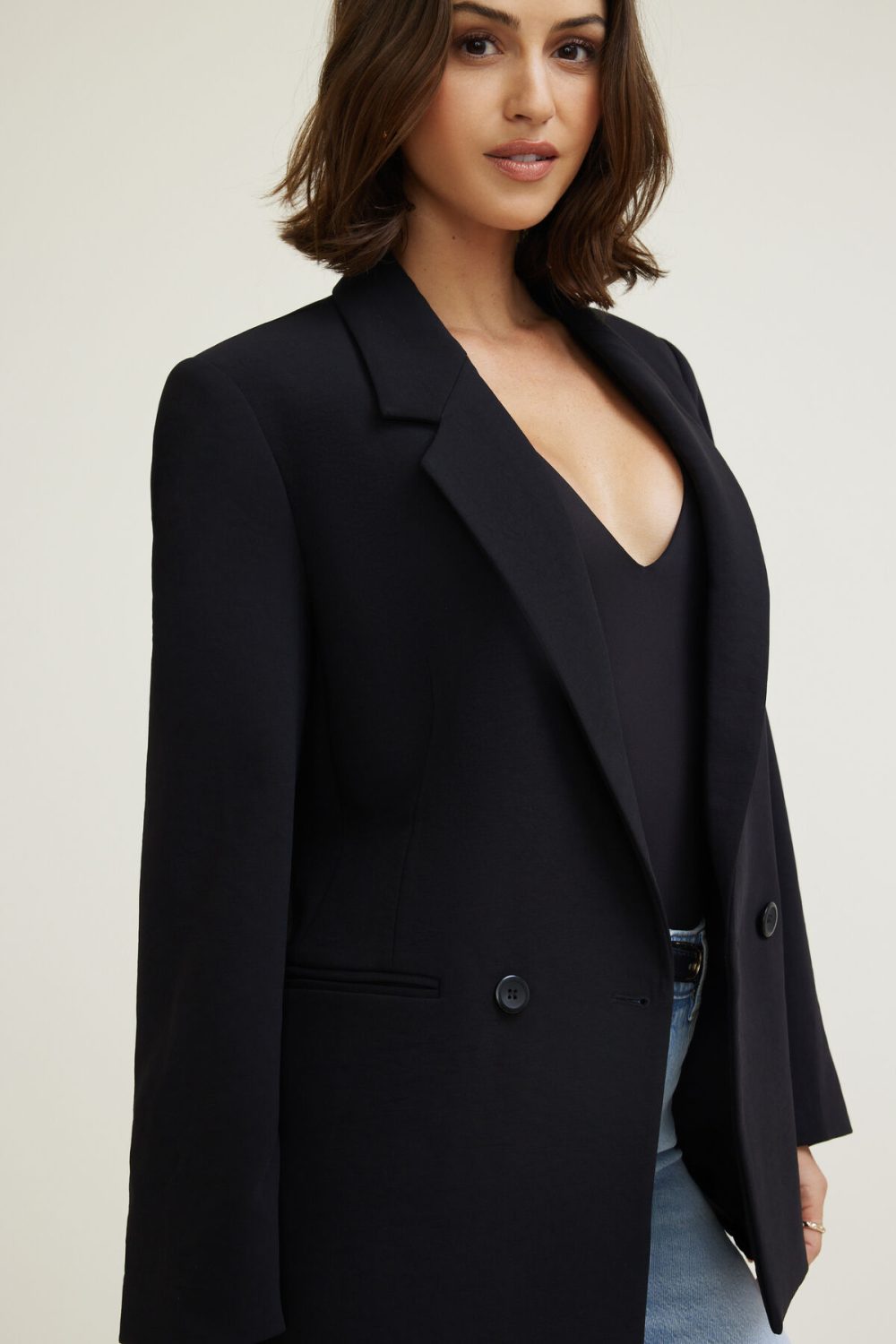 This blazer is made from flowy and heavyweight Airflow, designed to have a relaxed fit. Wear it with a tank top and pants for the ultimate work wear fit.